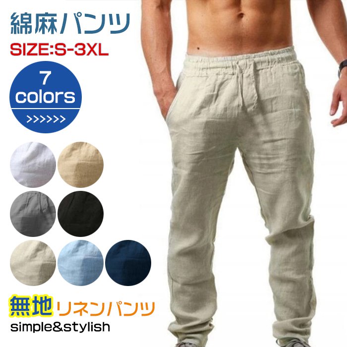 リネンパンツ 綿麻 パンツ メンズ ロングパンツ ストレートパンツ ロング丈 涼しい ズボン ワイドパンツ サルエルパンツ