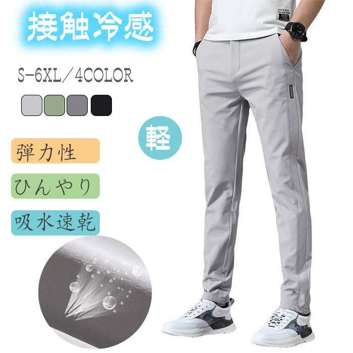 アイスシルクパンツ メンズズボン パンツ ストレッチ 超伸縮 接触冷感 速乾 薄手 ズボン ゴルフパンツ 通勤