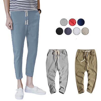 春 9分丈 リネンパンツ メンズ カジュアル ウエストゴム おしゃれ ウエスト紐 リネンパンツ ボトムス 春 夏 秋