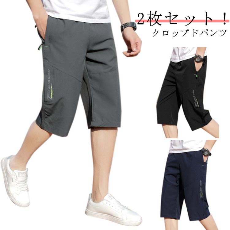 接触冷感 ハーフパンツ ひざ下 7分丈 メンズ 2 3 4 無地 夏メンズファッション ズボン パンツ