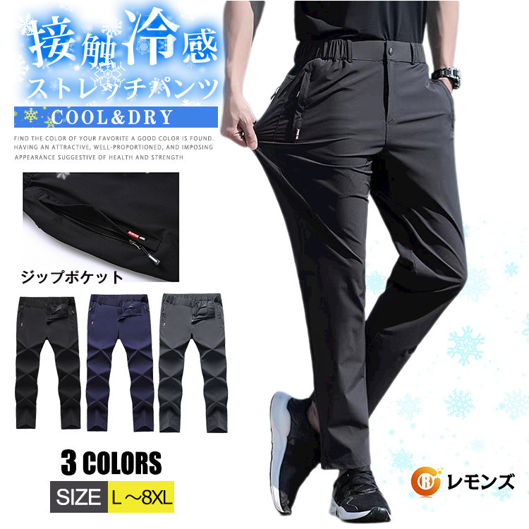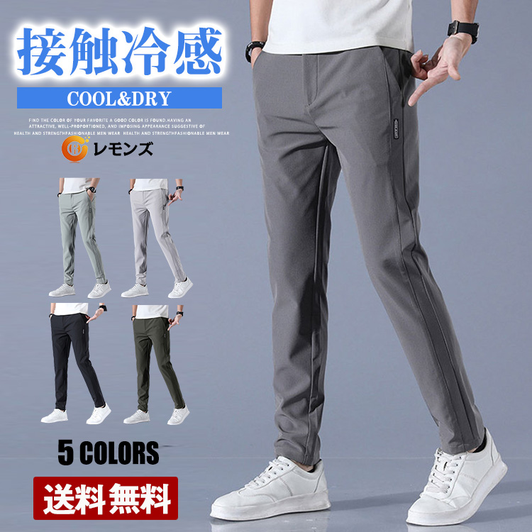 メンズ アイスシルクパンツ 冷感パンツ 無地 接触冷感 軽量 スポーツパンツ 速乾 ロングパンツメンズファッション ズボン パンツ