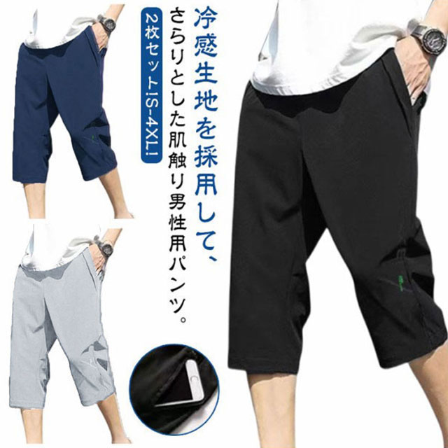接触冷感 ハーフパンツ ひざ下 7分丈 メンズ S M L XL 2XL 3XL 4XL 無地 夏メンズファッション ズボン パンツ