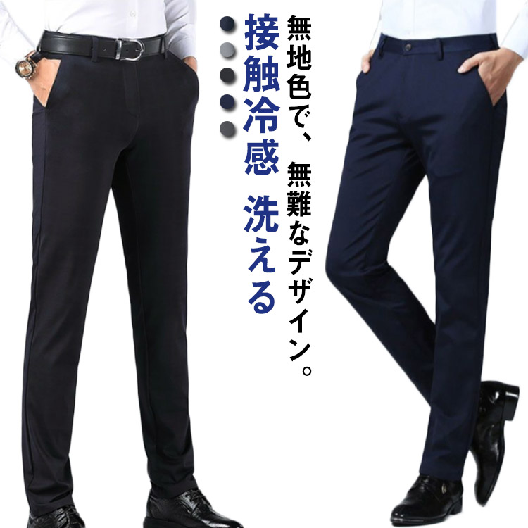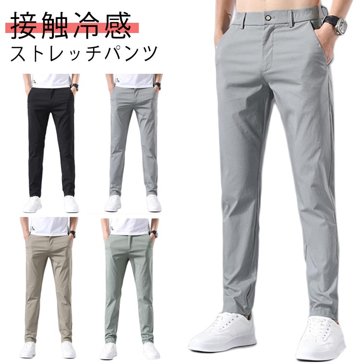 スラックス スリム メンズ 接触冷感 ストレッチパンツ 夏用 ビジネスメンズファッション ズボン パンツ