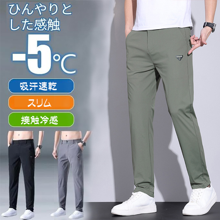 アイスシルク ゴルフパンツ 夏 ズボン 細身 カジュアルパンツ メンズ パンツ 夏 軽量 アイスシルク ロングパンツ ビジネス スキニーパンツ 薄手 接触冷感 速乾 薄手 ゴルフウェア ストレッチ ス