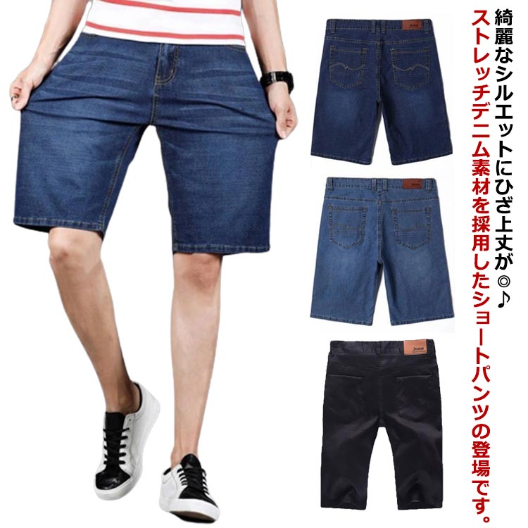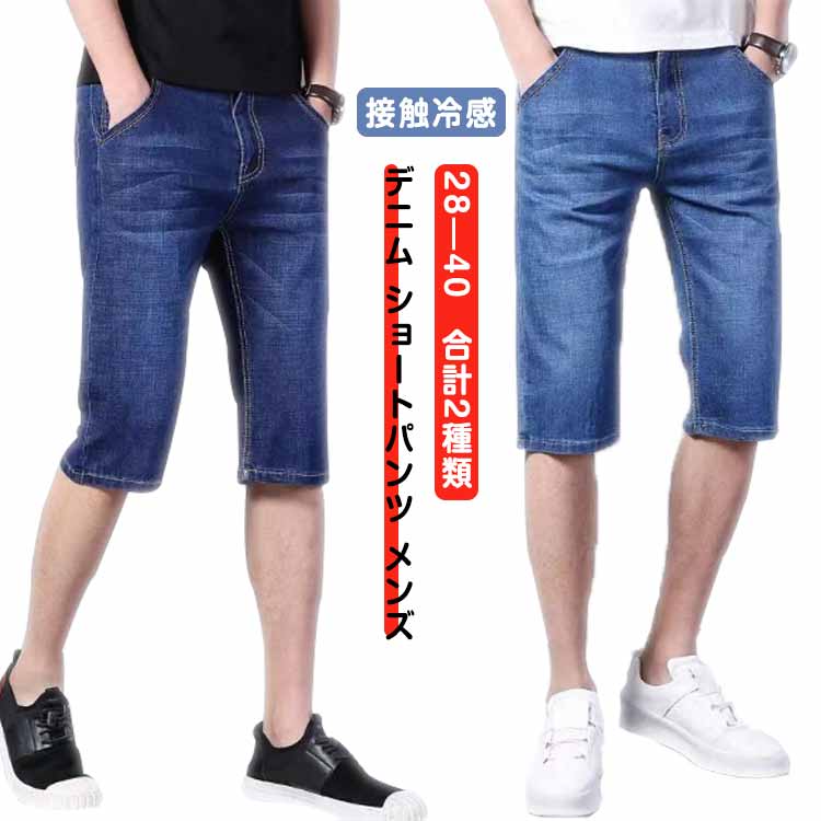 接触冷感 デニムショートパンツ 涼しい パンツ メンズ ストレッチ ジーパン ジーンズ ひんやり ボトムス
