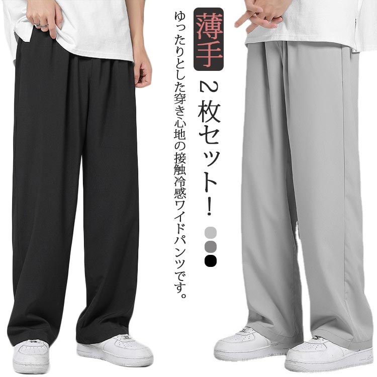 メンズ ワイドパンツ 接触冷感 ひんやり 涼しい 夏 カジュアルパンツ ロングパンツ 男性用メンズファッション ズボン パンツ