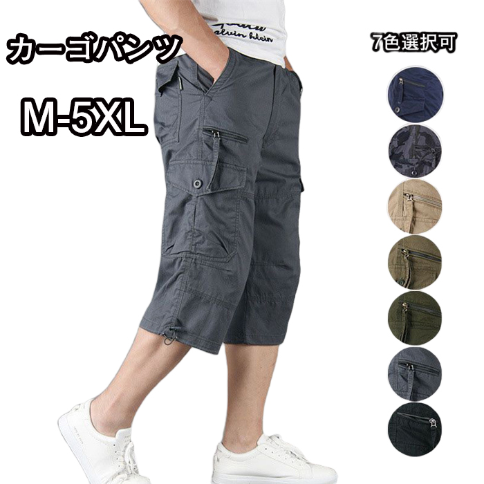 カーゴパンツ メンズ カーゴ ゆったり 7分丈 接触冷感 クール 無地 ハーフパンツ ズボン クロップドパンツ ショートパンツ M-5XL