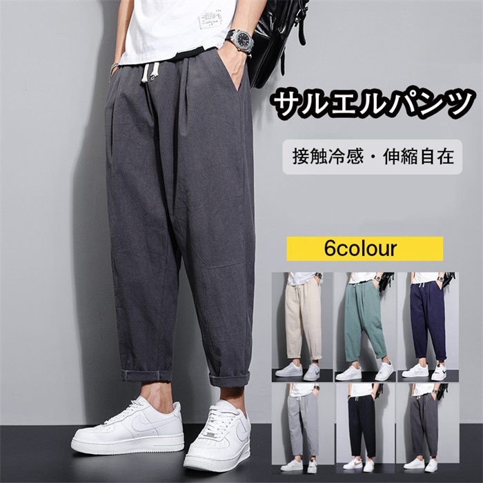 サルエルパンツ メンズ ズボン 涼しい 夏用 9分丈 ワイドパンツ 大きいサイズ アンクルパンツ ゆったり テーパード ずぼん ボトムス 春 夏 M-5XL