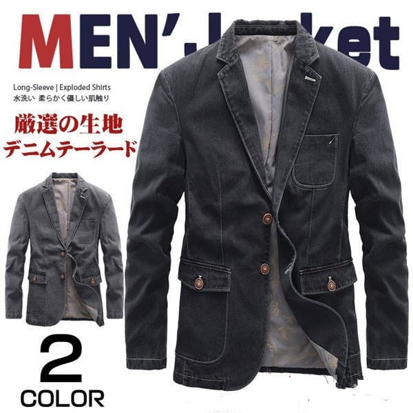 デニムテーラードジャケット メンズ ブレザー 2ボタン カジュアル 紳士服 デニムジャケット アウター スタイリッシュ