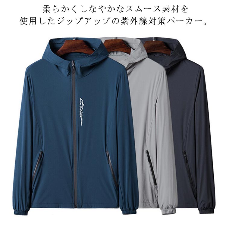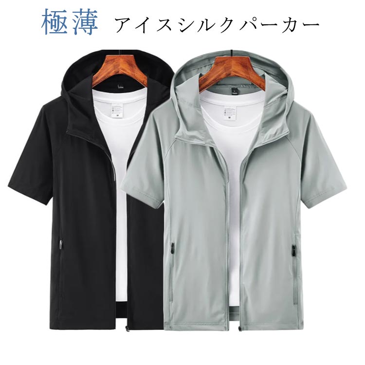 極薄 ジップアップパーカー ジップアップ メンズ 接触冷感 前開き フード付きメンズファッション トップス パーカー