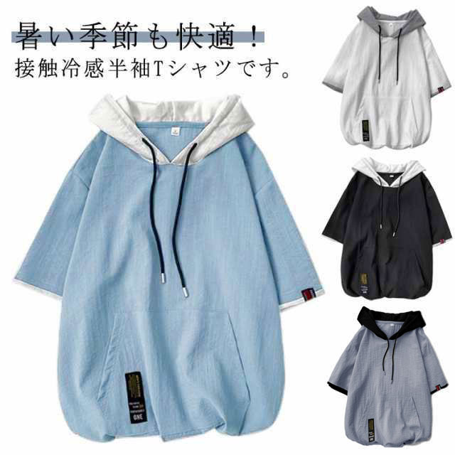 パーカー メンズ 夏 半袖パーカー Tシャツ フード付き 涼しい スポーツウエア おしゃれ 薄手 快適
