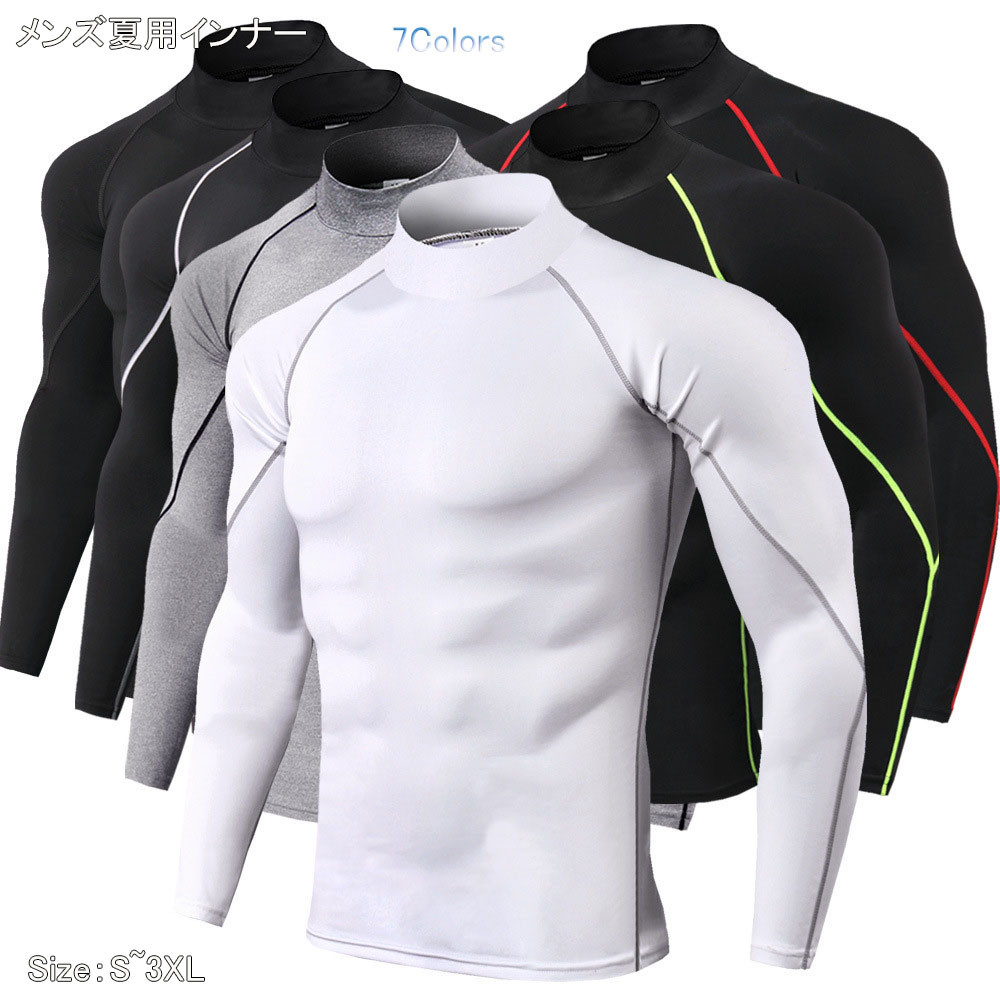 メンズインナー 長袖 夏用 ハイネック トレーニングウェア ゴルフ 吸汗速乾 野球部 ランニング 野球用品 接触冷感 吸汗速乾 消臭 コンプレッション UVカット スポーツ ジョギング S~3XL