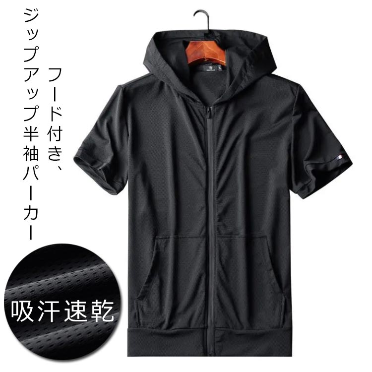ジップアップ メンズ パーカー 夏 半袖 速乾 フード付き 半袖 半袖パーカー スポーツ シンプル おしゃれ スポーツ