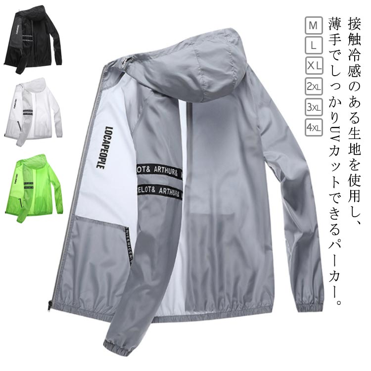 夏用 冷感 ひんやり 涼しい 接触冷感 パーカー フード付き ジャケット 軽量 ラッシュパーカー 長袖 アウター 通気性