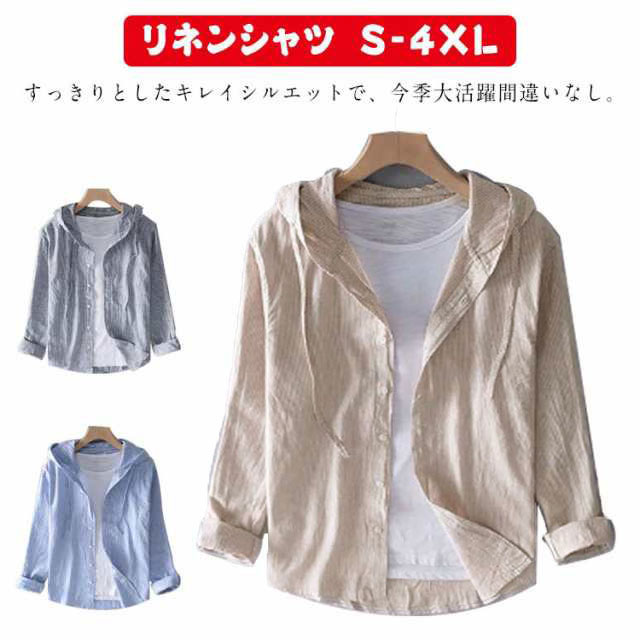 フード付きパーカー 夏用 リネンシャツ リネンシャツ 長袖パーカー パーカー メンズ 前開き 薄手 夏 春夏 麻 綿麻 シンプル 薄手 涼しい 無地 カジュアル 青
