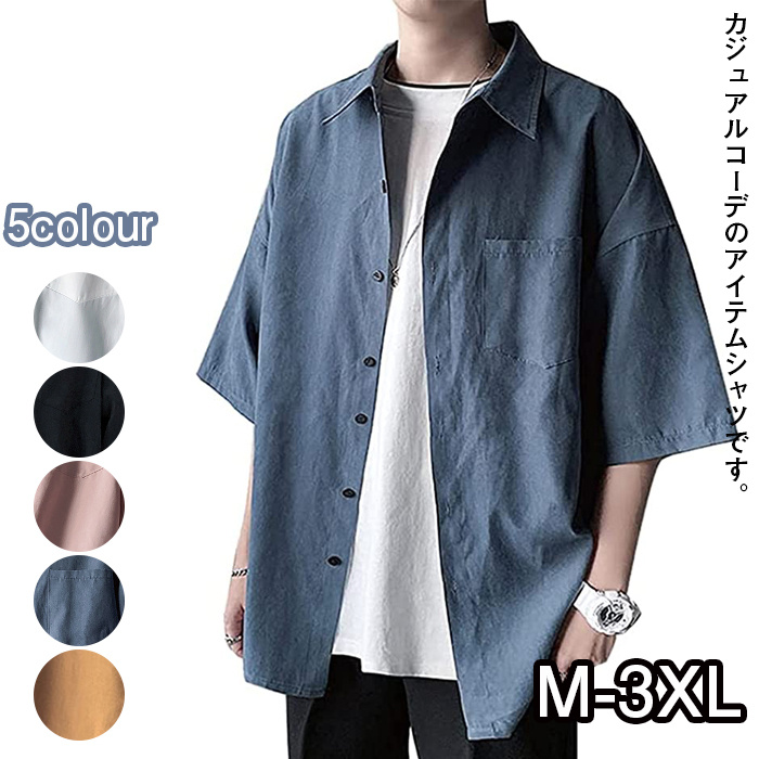シャツ メンズ 半袖 カジュアル シンプル オシャレ 無地 人気 夏服 シャツ 大きいサイズ メンズ シャツ