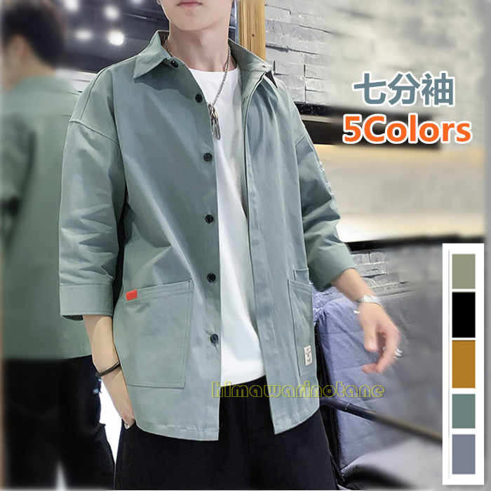 ワークシャツ メンズ 7分袖 シャツ かっこいい ミリタリーしゃつ 無地 夏服 しちぶそで 上着 ワーク系 襟付き トップス スリムフィット 大人 アメカジ 服 綿100% おしゃれ