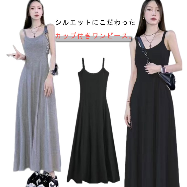 ルームワンピース ワンピース ジャンパースカート フレア キャミワンピース お洒落 韓国ファッション 体型カバー 外で着られるカップ付きキャミワンピース