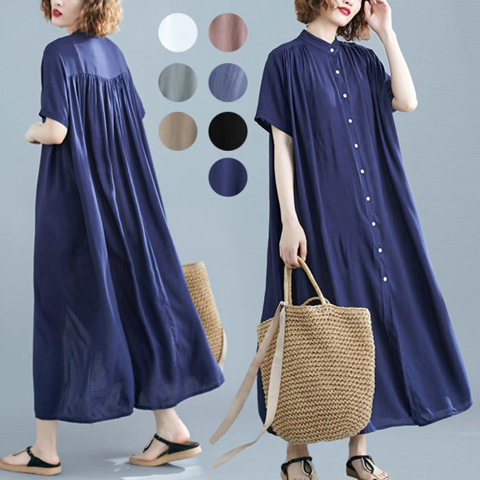ワンピース 春 夏 半袖 きれいめ リネン レディース ロング 体型カバー 20代 30代 40代 ワンピース シャツ 体型カバー ゆったり 大人 着やせ 大きいサイズ フォーマル お呼ばれ お洒