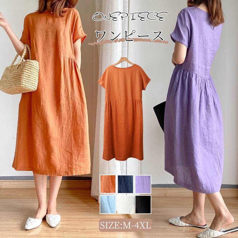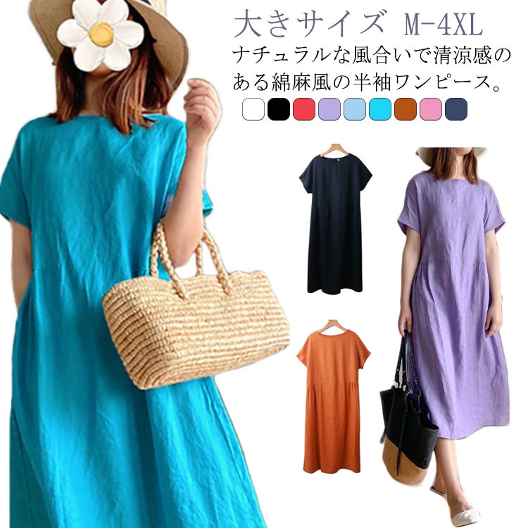 ワンピース 春 夏 半袖 きれいめ リネン レディース ロング 体型カバー 20代 30代 40代 Tワンピース Tシャツ 体型カバー ゆったり 大人 着やせ 大きいサイズ フォーマル お呼ばれ お洒