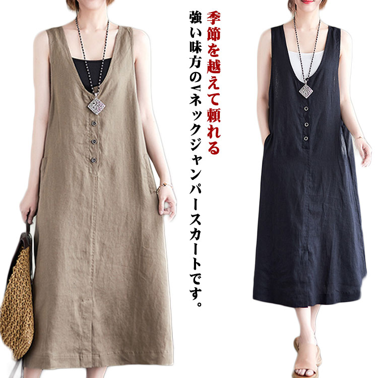 レディース 大人 春 ジャンパースカート vネック 大きいサイズ きれいめ 夏レディースファッション ワンピース