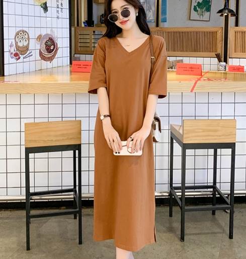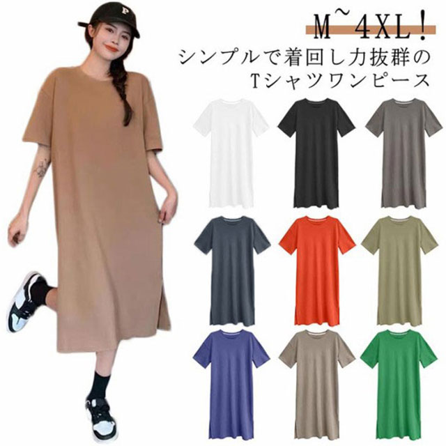 ワンピース Tシャツ 袖あり 半袖 Vネック 襟なし ロング丈 かわいい 大人可愛い きれいめ シンプル カジュアル 大人 上品 おしゃれ お洒落 かっこいい 大人可愛い 大人女子 こなれ感 ラフ