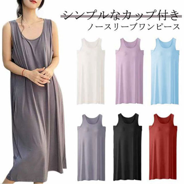 ルームウェア ワンピース レディース 1枚で着られる ノースリーブ 部屋着 ロング丈 カップ付きレディースファッション ワンピース