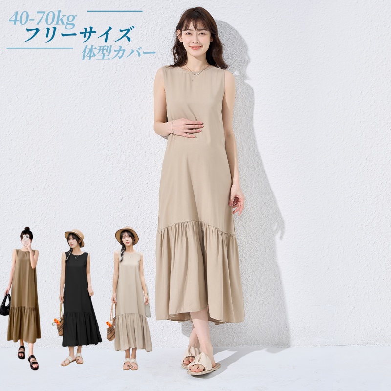 ワンピース レディース ロング丈 ノースリーブ シャツワンピース ゆったり 体型カバー マタニティ ワンピース 大きいサイズ ゆったり 体型カバー カーキ 黒 カーキグリーン