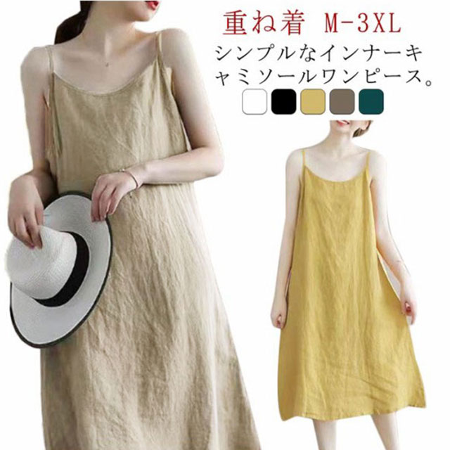 キャミソールワンピース インナー ワンピース レディース ノースリーブ 綿 春 夏 ペチワンピース ロング
