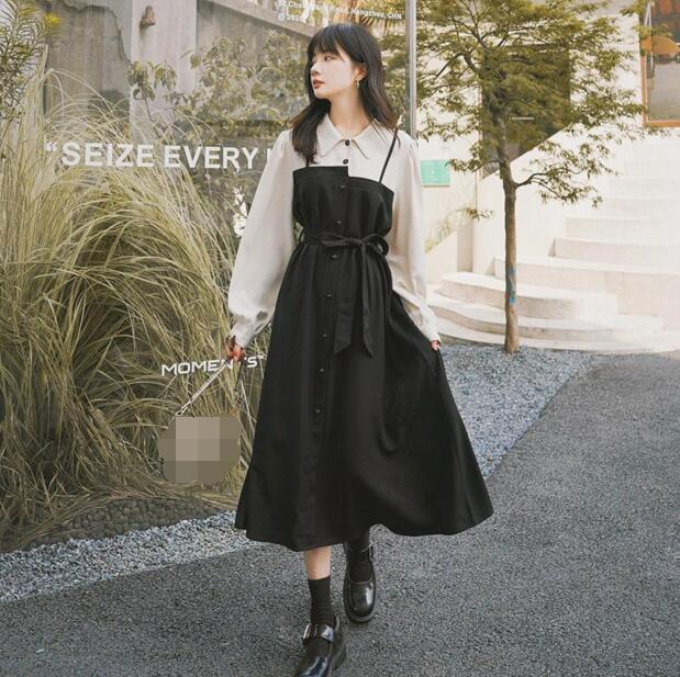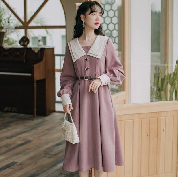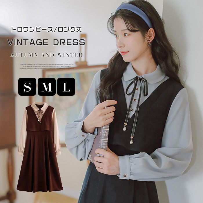 レディース ワンピース レトロ ワンピース レトロワンピース 女子ワンピ 長袖 春 秋 冬 膝下丈 ロング丈 可愛い 美シルエット