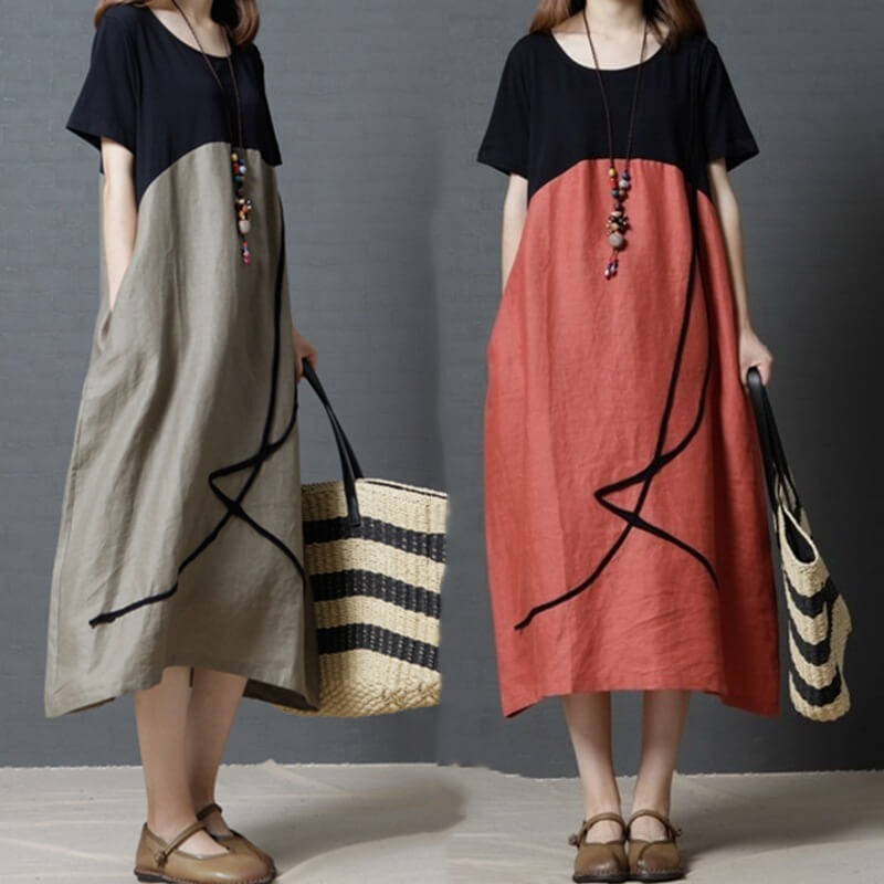 ワンピース レディース ロングワンピース マキシワンピース ロング リゾート マキシ丈 コットン リネン 綿麻 麻 大人 上品 きれいめ ライン 半袖 大きいサイズ 森ガール 体型カバー ゆったり