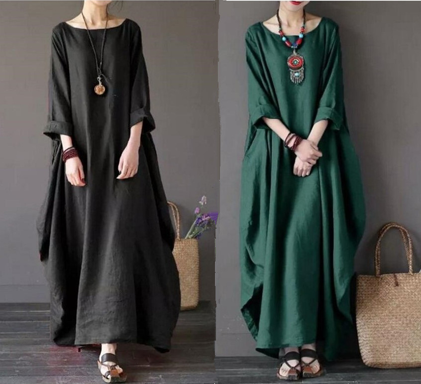 ワンピース リネン リネンワンピース レディース 綿麻 麻 ロングワンピース ロング マキシ丈 シンプル きれいめ Aライン ワンピ 長袖 七分袖 大きいサイズ ゆったり 体型カバー 春 夏 秋 秋冬