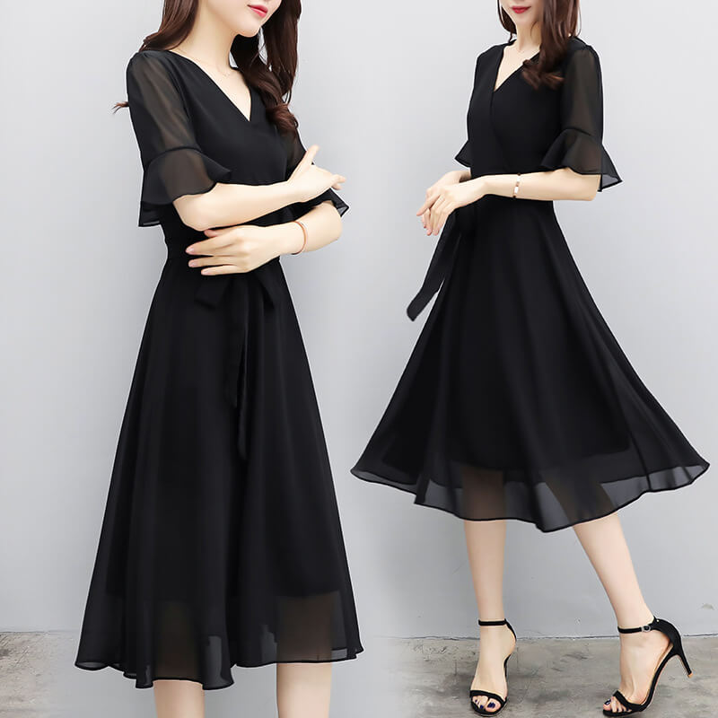 ワンピース 夏 レディース ロングワンピース シフォンワンピース 黒 リゾート ロング 膝丈 きれいめ Aライン フレア 大人 上品 半袖 大きいサイズ カジュアル フォーマル 結婚式 パーティー ド
