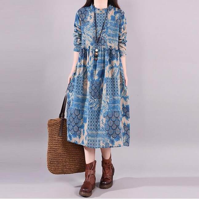 ワンピース レディース ロングワンピース リネンワンピース ロング リゾート プリント コットン リネン 綿麻 麻 きれいめ Aライン フレア 長袖 大きいサイズ 森ガール ゆったり 体型カバー 春