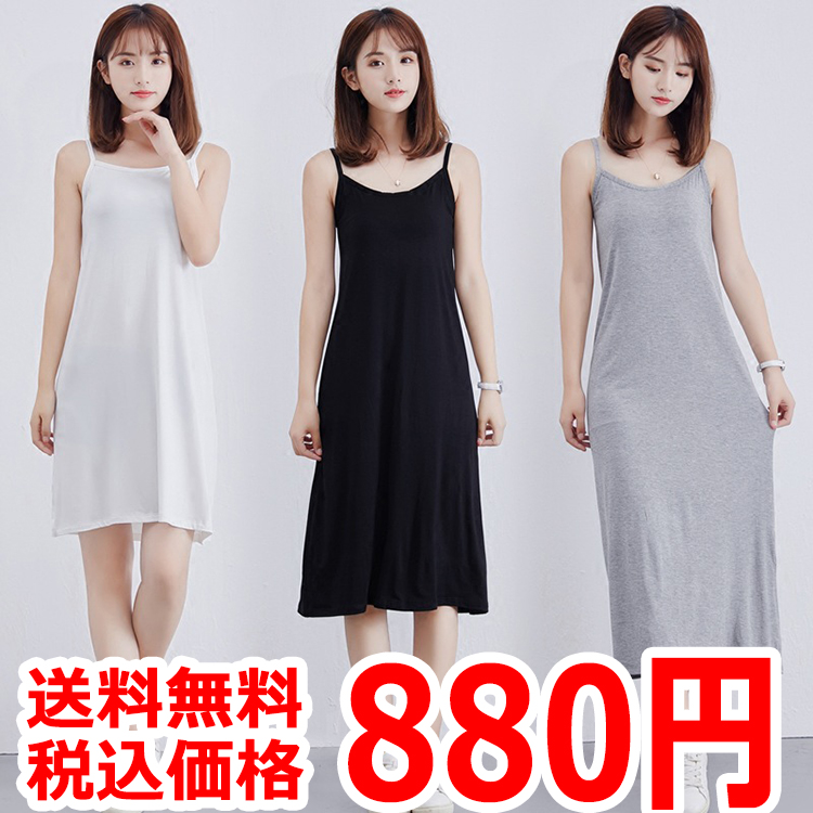 インナー レディース キャミソール ワンピース ロングキャミ キャミワンピ インナーキャミ インナーワンピース 肌着 春夏秋冬 白 灰 黒 ホワイト グレー ブラック 天然素材 モダール ストレッチ