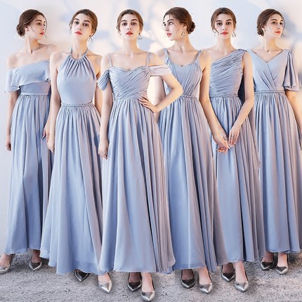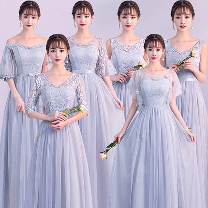 ダークグレー グレー6デザインパーティードレスワンピース二次会演出司会ブライズメイドドレス結婚式お呼ばれ マキシ丈ロングドレスブライズメイドドレスフォーマルドレス