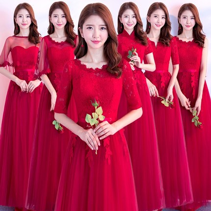 6タイプロングドレスマキシ丈ブライズメイドドレス ワンピース パーテイードレスグレー レッド ピンク 二次会 演奏会 披露宴 結婚式 発表会花柄お花嫁の介添え