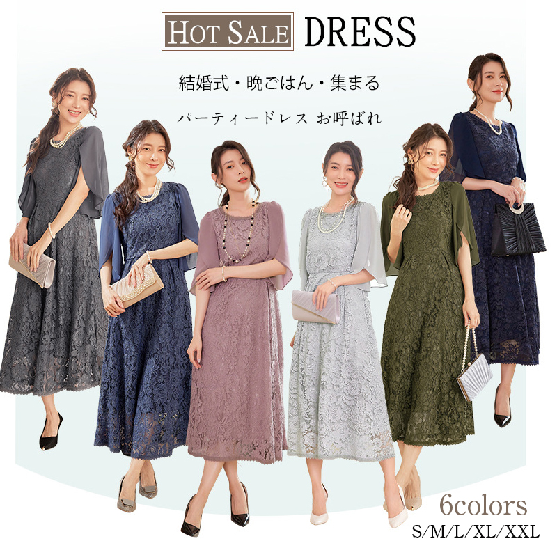 フォーマルドレス ワンピース 結婚式 ワンピース パーティードレス 着痩せ ライン 顔合わせ 袖なし 総レース ロング丈 上品 40代 50代 春 夏 秋 冬 150 小柄 二次会