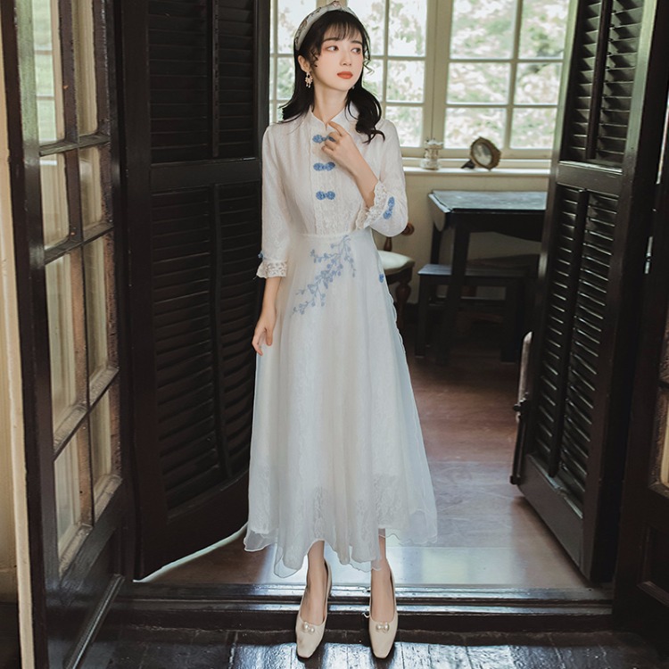 秋 レトロワンピース レディースワンピース チャイナドレス ドレス チャイナワンピース レディースワンピース レトロ調 エスニック 刺繍 刺繍ワンピース レース きれいめ 着痩せ おしゃれ 透け バル