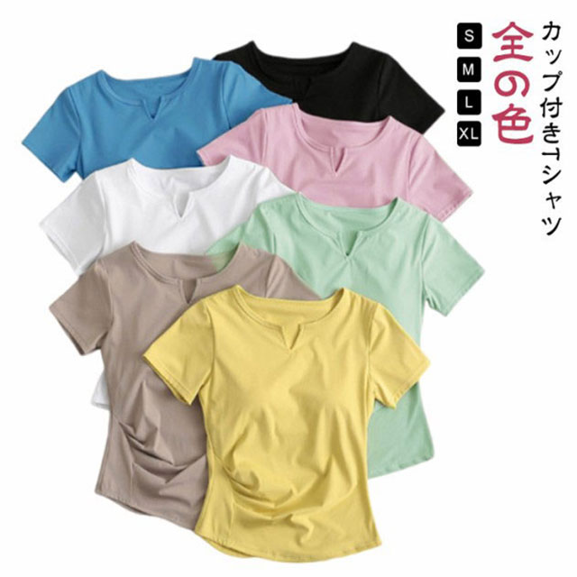 プレゼント ストレッチ 部屋着 女性 パジャマ シンプル ジム パッド付きTシャツレディースファッション トップス Tシャツ カットソー