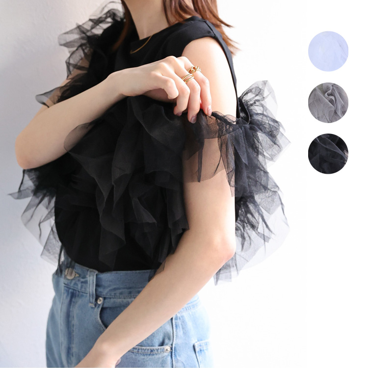 トップス カットソー ノースリーブ チュール ドッキング レディース 夏 カジュアル ゆったりサイズ ラフ シンプル 大人可愛い お洒落 韓国ファッション 女性用ファッション レディースファッション