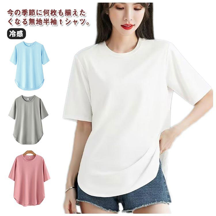 汗ジミ防止 シャツ レディース 接触冷感 カット トップス カットソー 半袖 クルーネック 春夏 夏服 夏