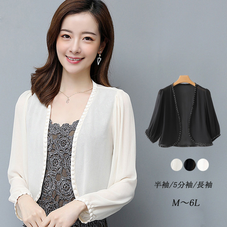 ボレロ 結婚式ボレロ ワンピース 結婚式 フォーマル パーティーボレロ ドレス お呼ばれボレロ ジャケット シフォン 半袖 五分袖 長袖 レディースショール パーティ 黒 大きいサイズ 20代30代4