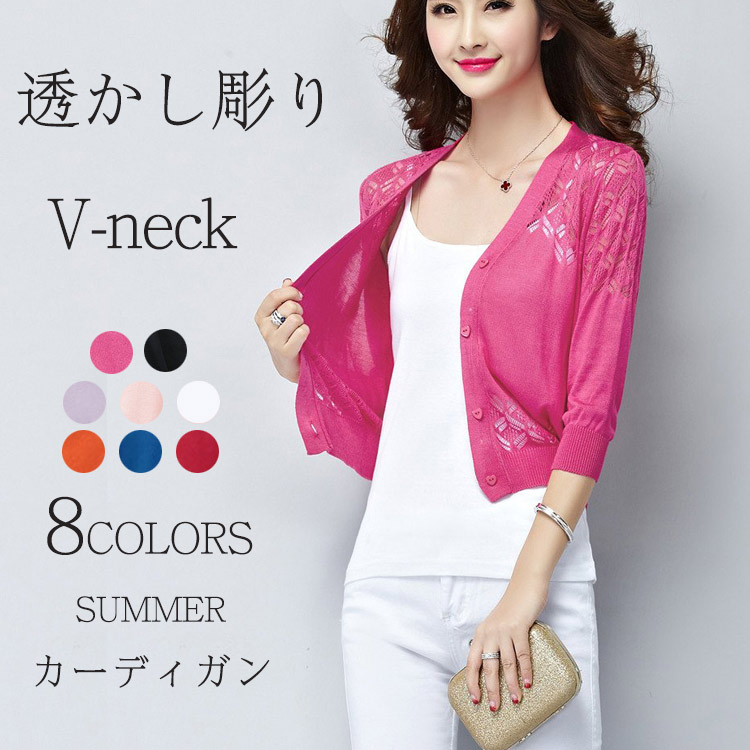 カーディガン レディース 半袖 Vネック 無地 薄手 春 夏 前開き サマーカーディガン 冷房対策レディースファッション トップス カーディガン ボレロ