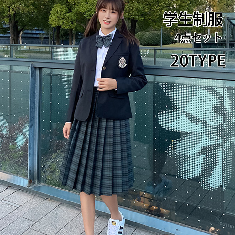学生服 レディース 4点セット 制服 学生制服 スクール ジャケット ワイシャツ プリーツスカート ロングスカート ショートスカート ネクタイ リボン 春 秋