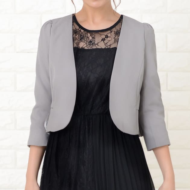 七分袖ボレロ パーティー カーディガン ドレス用 フォーマル レディース 二の腕隠し お呼ばれ 結婚式 お呼ばれ 披露宴 二次会 グレー ベージュ ブラック 春 夏 秋 冬