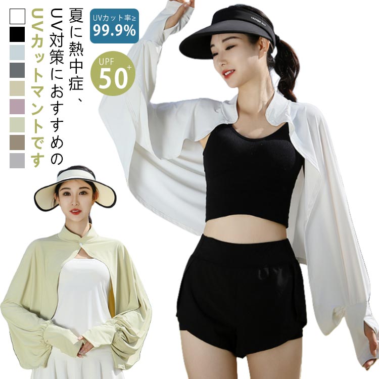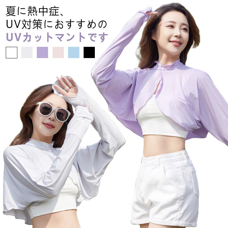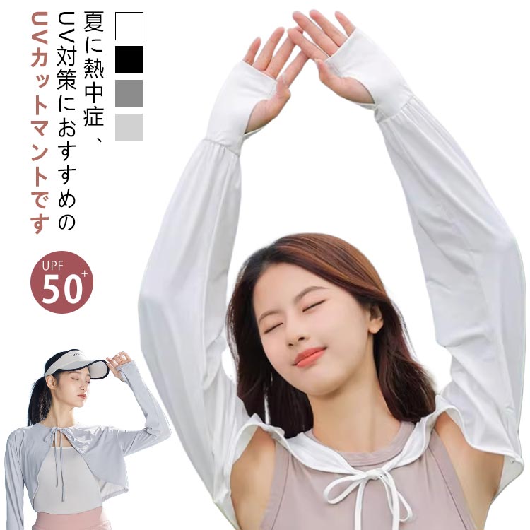 熱中症対策 ひんやり 着る日焼け止め UVマント 着るアームカバー 羽織り UVカット ボレロ型 ボレロタイプ 接触冷感 手袋 指穴付き 前後差 upf50 涼しい UV対策 冷房対策 UVケープ