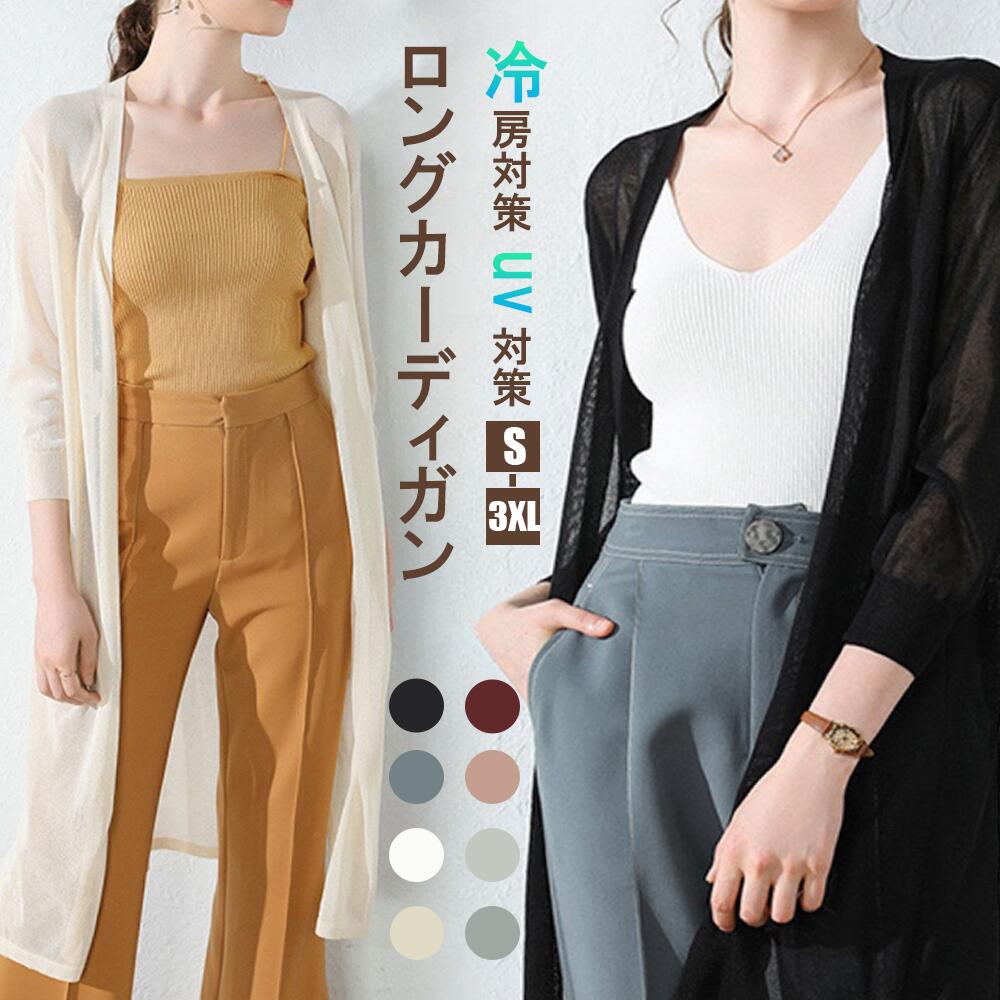 カーディガン 薄手 レディース 春夏 オフィス サマーカーディガン 冷感 カット 長袖 ボタンなし シフォン ストレッチ 綿 コットン 涼しい 大きいサイズ おしゃれ 薄い ひんやり 無地 日焼け