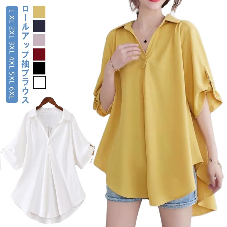 レディース ブラウス シファン 白 シャツ 七分袖 大きいサイズ トップスレディースファッション トップス シャツ ブラウス