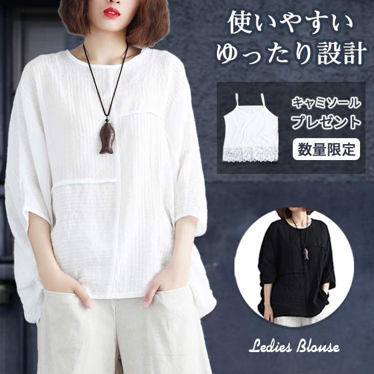 7分丈 半袖 シャツ ブラウス レディース ワイドパンツ レディース 夏 綿麻レディースファッション トップス シャツ ブラウス